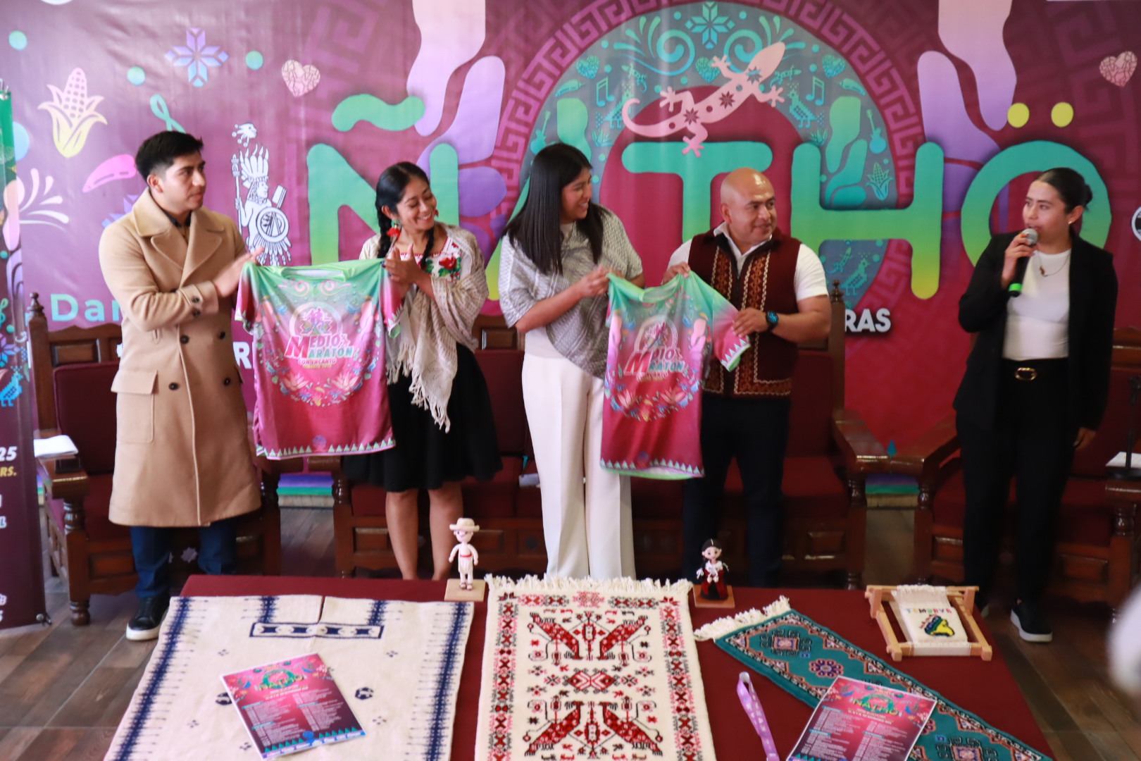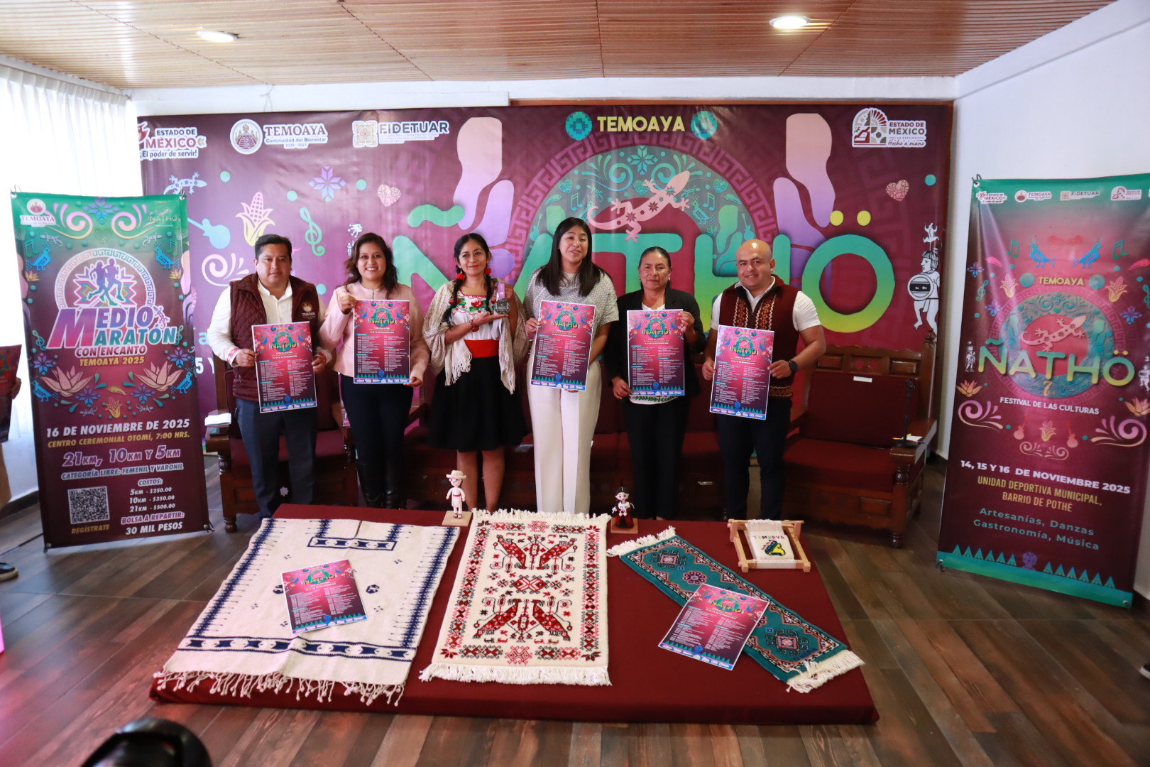 En conferencia de prensa realizada en el Centro Ceremonial Otomí, la presidenta municipal Berenice Carrillo Macario presentó los detalles del festival, así como del “Medio Maratón con Encanto Temoaya 2025”, que espera reunir a más de mil corredores. Destacó que ambos eventos buscan fortalecer la identidad otomí y unir la cultura con el deporte como motores de orgullo y desarrollo local.